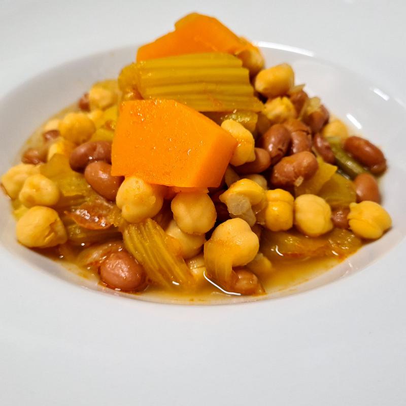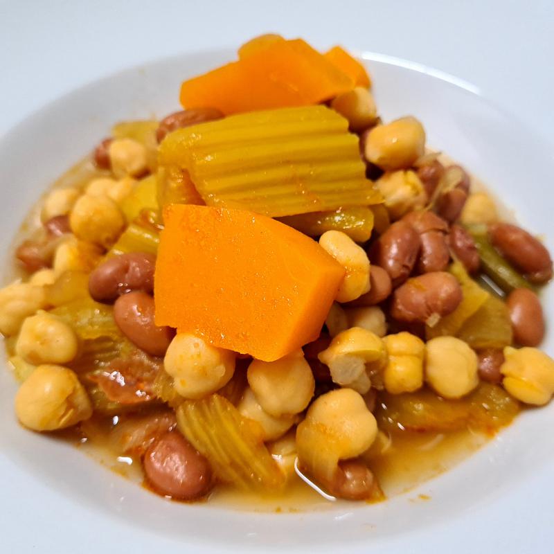 Olla de judías garbanzos y calabaza